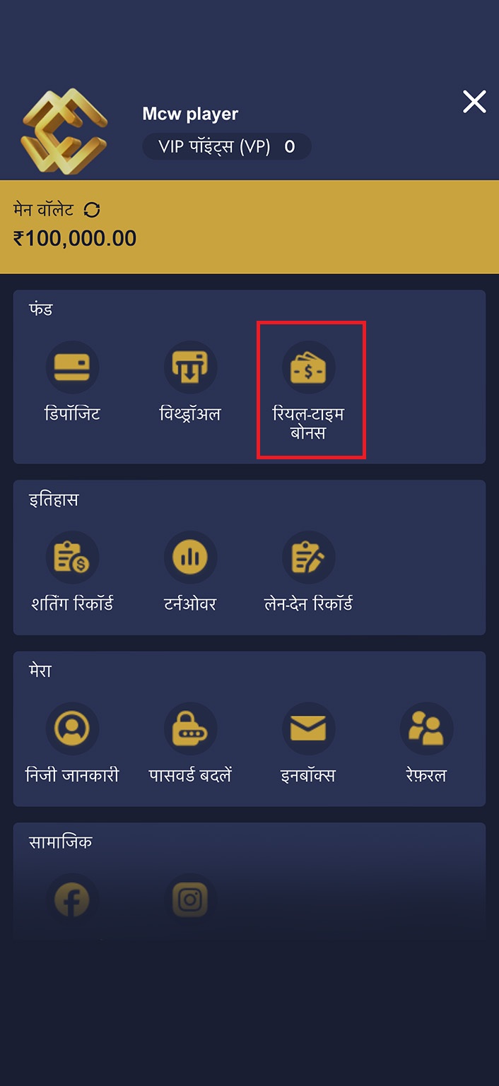 3. मुख्य वॉलेट टैब पर क्लिक करें और रीयल-टाइम बोनस आइकन देखें। आगे बढ़ने के लिए क्लिक करें।